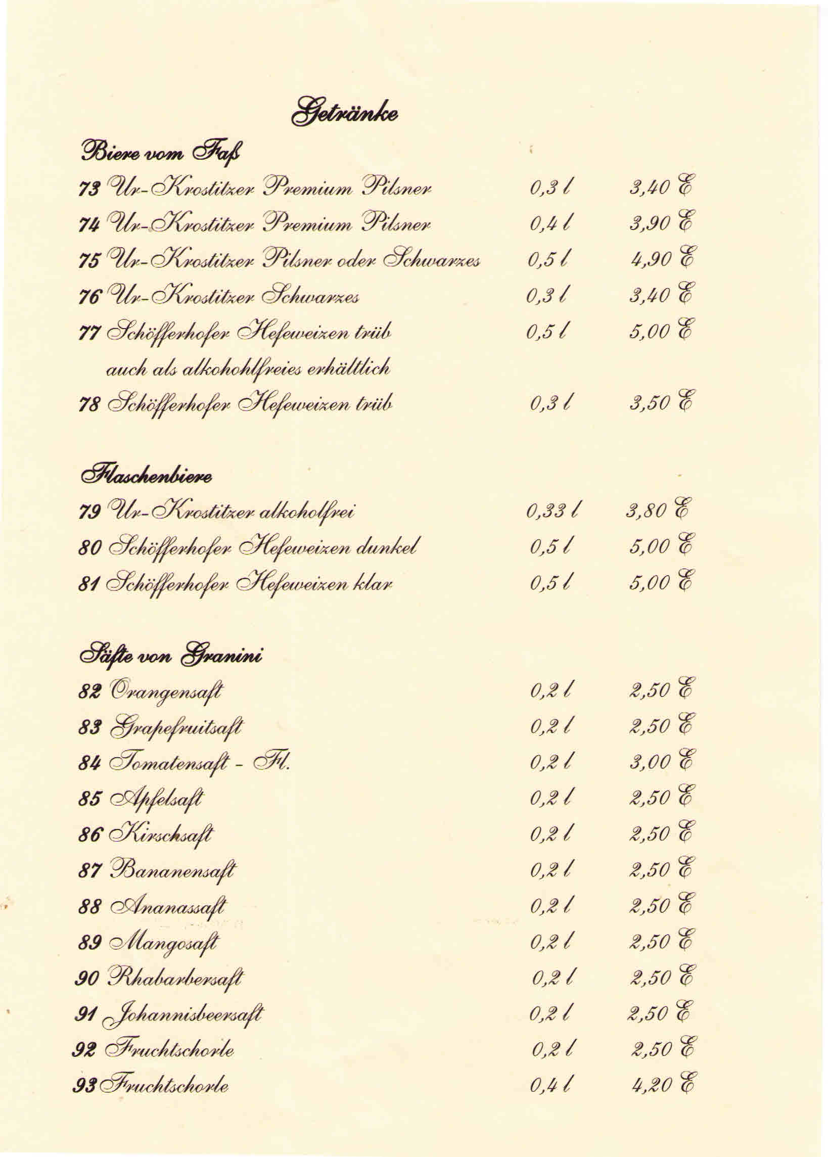 Getränkekarte